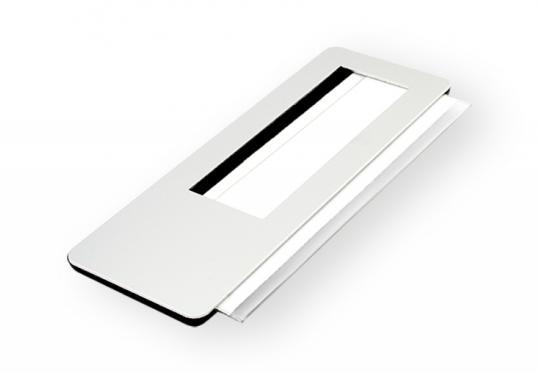 Aussenformat:. 74 x 26 mm, Namensfeld: 45 x 15 mm.