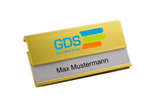 Der Klassiker unter den Namensschildern. Das aus eloxiertem Aluminium