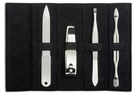 Nagelfeile, Nagelklippser, Pinzette und Nagelhautschieber